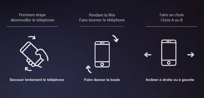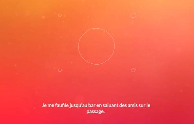 We then looked at the various interactions that the user will have to carry out with a tablet. To make them understandable, we indicated their manipulation through a series of animations integrated into the scenario. In addition, we experimented with several spheres on Processing so that the user could identify and feel the emotions as well as possible. To make the installation more immersive we put in various sounds and a clean background that changes according to the story.