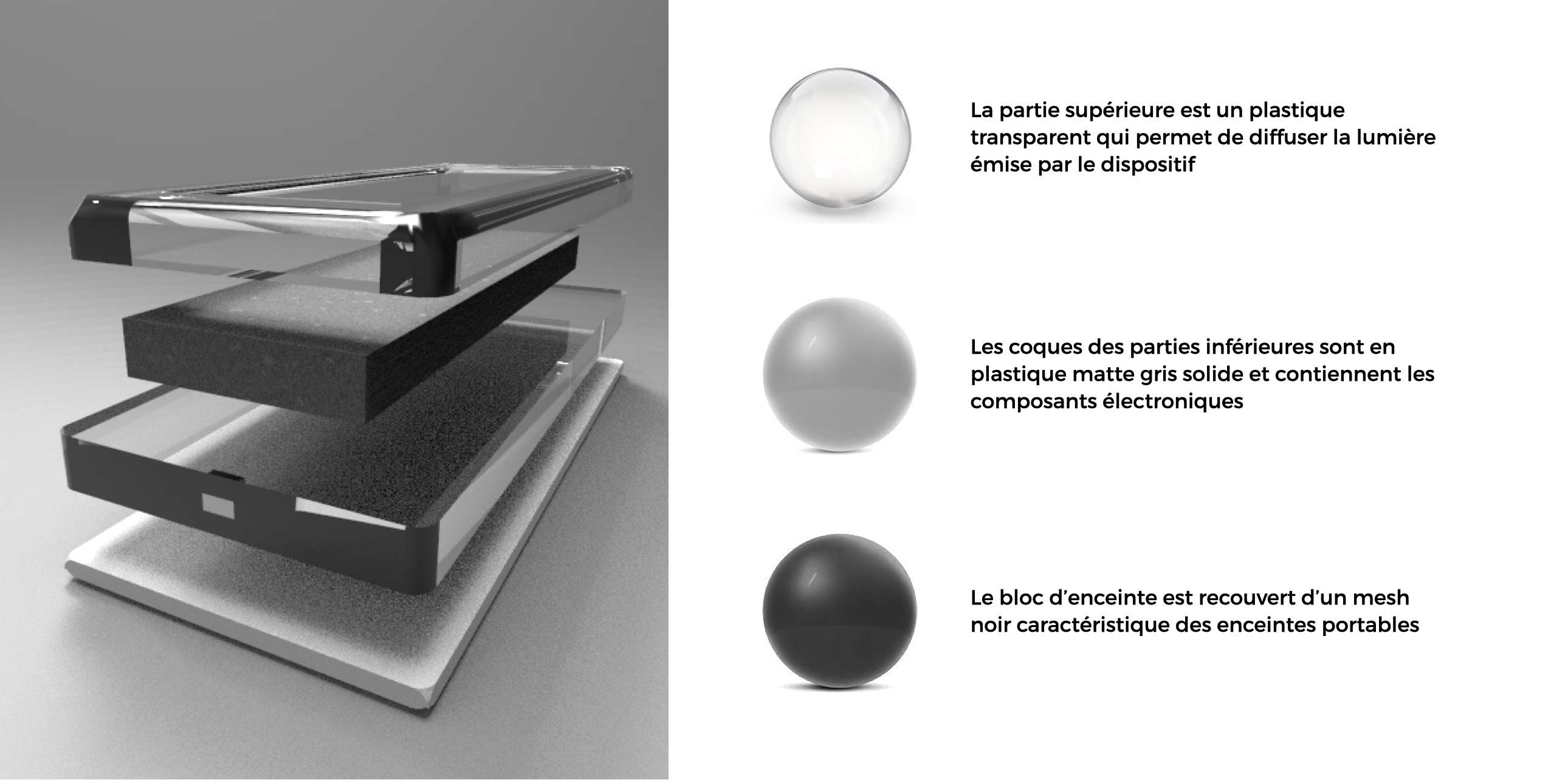 The box can be used as an alternative to the application. To meet the same functionality, the object embeds a light system without a screen as well as a speaker module.